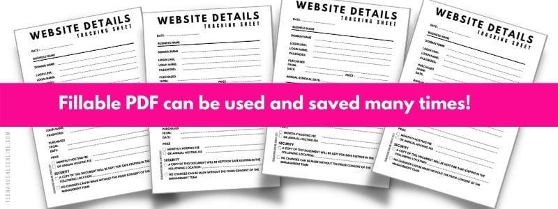 Website Domain and Hosting Tracking Sheet by Teena Hughes [Free PDF]